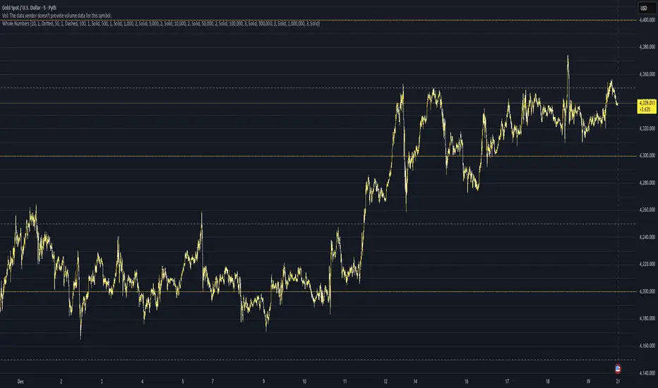 This indicator is a high-precision tool designed to automatically visualize psychological price marks and "round numbers" on your chart. It helps traders identify key areas where institutional orders and market sentiment often cluster, providing a clear map of potential support and resistance zones based on mathematical multiples.