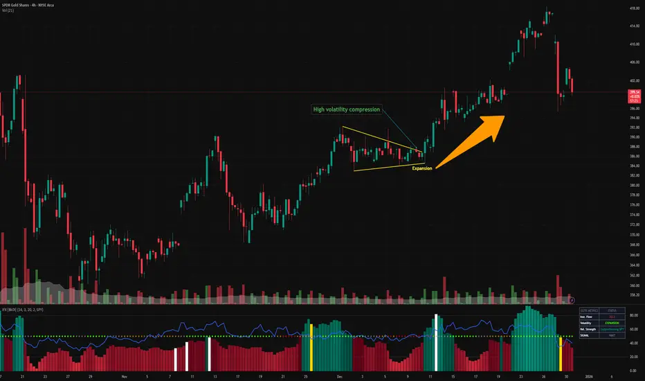 • 🔵 Blue (Expansion): The move is underway. Volatility is expanding.