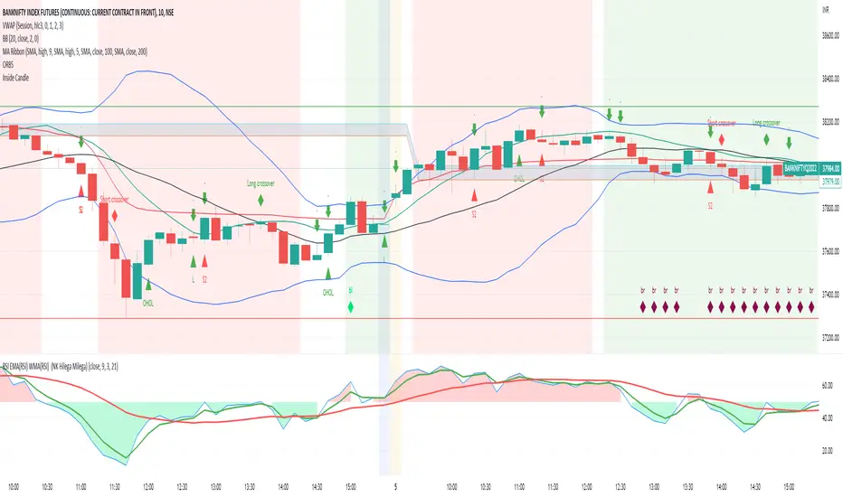 1. Cleaned up the patterns some more to eliminate bad signals. Fewer, but cleaner2. In all cases, please take position after accounting for HM and ORB. For example, if the indicator indicates short, but the chart shows ORB in the immediate support or in HM, black is above green or trending up - avoid taking a short or keep very small SL