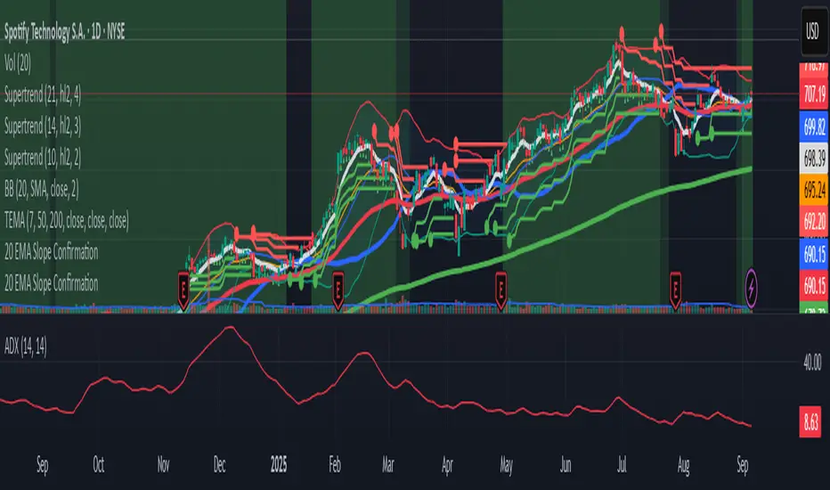 - Flags when today’s EMA is greater than the average → bullish slope.