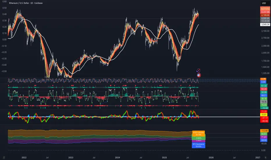 Track how market share shifts between BTC, ETH, large altcoins, and smaller altcoins over time. Ideal for analyzing trends, spotting dominance changes, and visualizing overall crypto market structure.
