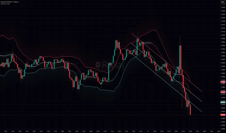 Running Theil-Sen on multiple bars means calculating slopes between all pairs of points across your lookback window, sorting those slopes, and then applying the Gaussian kernel to find the weighted center of that sorted distribution. This is computationally more expensive than simple moving averages or even standard linear regression, but Pine Script handles it well enough for reasonable lookback lengths. The benefit is that you get a trend estimate that doesn't get thrown off by individual spikes or anomalies in your price data, which is valuable when working with noisy instruments or during volatile periods where traditional regression lines can swing wildly.
