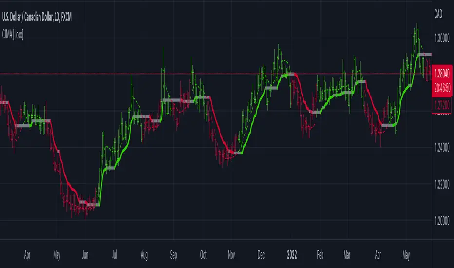 This indicator uses the Juirk Moving Average to calculate price deviations from the JMA and if the changes are not significant, then the value is "flattened". That way we can easily see both trends and potential chop zones. This uses the regular JMA as a trigger.