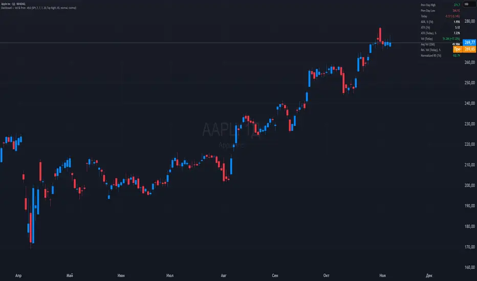 What it shows: Average daily range (High – Low), expressed as a percentage of the closing price, for the selected period (default 7 days).