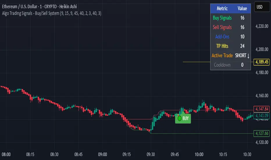 **Algo Trading Signals** is a sophisticated intraday trading indicator designed for algorithmic traders and active day traders. This system generates precise buy and sell signals based on a dynamic box breakout strategy with intelligent position management, add-on entries, and automatic target adjustment.