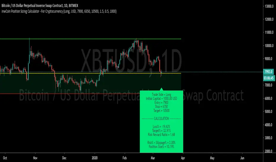 inwCoin Position Sizing Calculator - For Cryptocurrency