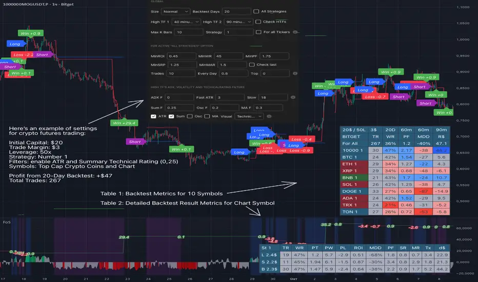 - Higher Timeframe filters (Technical Rating, ADX, Volatility) and ability for check backtest results with 9 main higher timeframes
