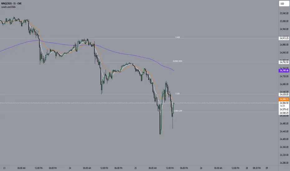 Updates dynamically during the session and plots “GLOBEX HIGH” and “GLOBEX LOW” lines with labels.