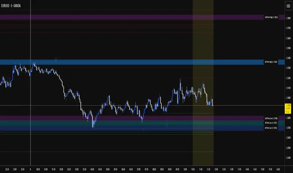 BIAS PRO is an advanced technical analysis tool developed by AlgoRich, designed to accurately identify institutional liquidity zones, key pivot points, and structural support/resistance levels, combined with customizable trading sessions.