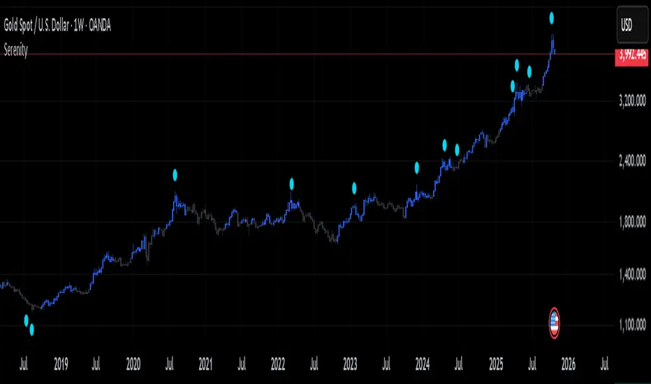 Built on the philosophy that no single perspective captures the full picture, Serenity offers two complementary views—Skye and Shade—to provide a more rounded interpretation of the market. Serenity’s logic builds on core market concepts—trend, momentum, and volume—combining them through carefully structured conditions that work across multiple timeframes. By focusing on where these elements align, it highlights key moments in the market while filtering out noise, providing clear and meaningful visual cues for analysis.