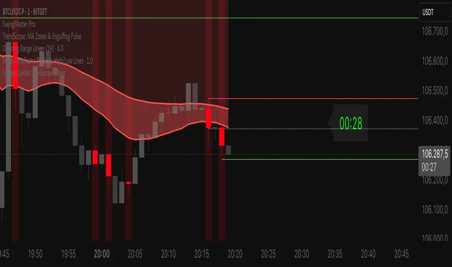 This lightweight and customizable TradingView indicator displays a real-time countdown timer for the current candle directly on your chart. The timer updates every second and shows the time remaining until the current candle closes, in the format MM:SS.