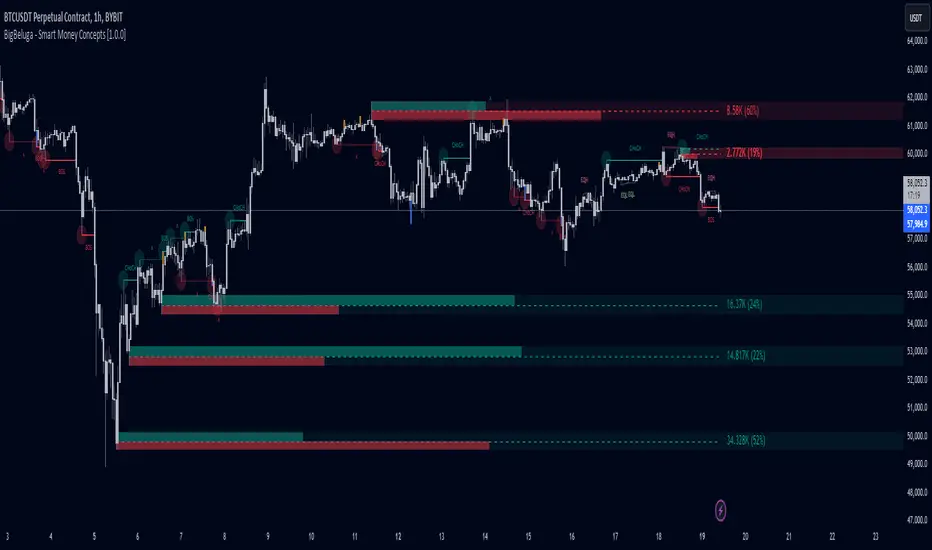 The Smart Money Concepts [BigBeluga] is a comprehensive toolkit built around the principles of "smart money" behavior, which refers to the actions and strategies of institutional investors.