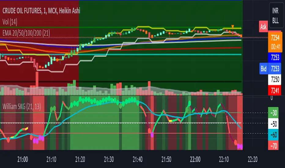 This is William% R indicator alongwith EMA and RSI overbought and oversold background