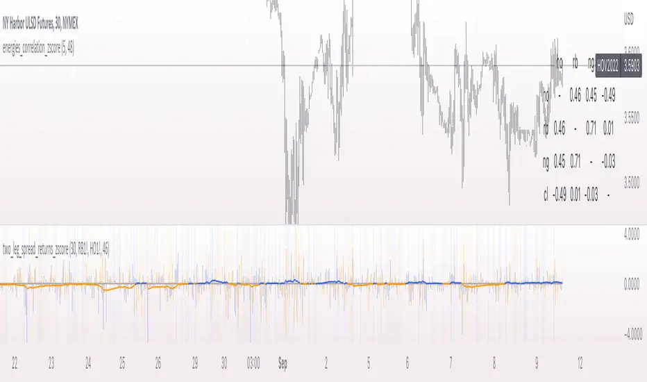 - moving average line is blue if above 0 (leg1 returns strengthening relative to leg 2), orange if below (opposite).Script de código abierto