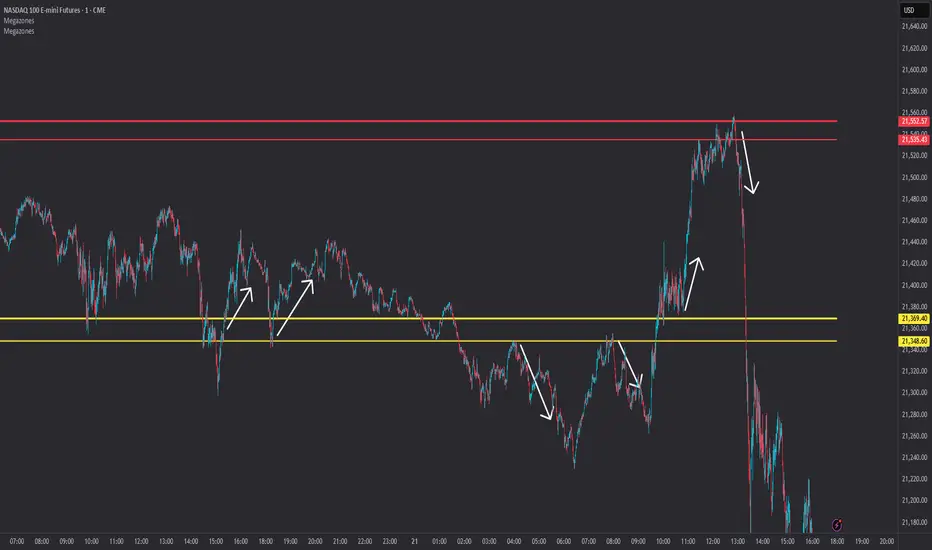 Megazones is a dynamic tool that detects price expansion ranges based on pivot structure. It automatically plots a pair of horizontal lines when both pivot highs and pivot lows are expanding — signaling directional strength and potential breakout zones.