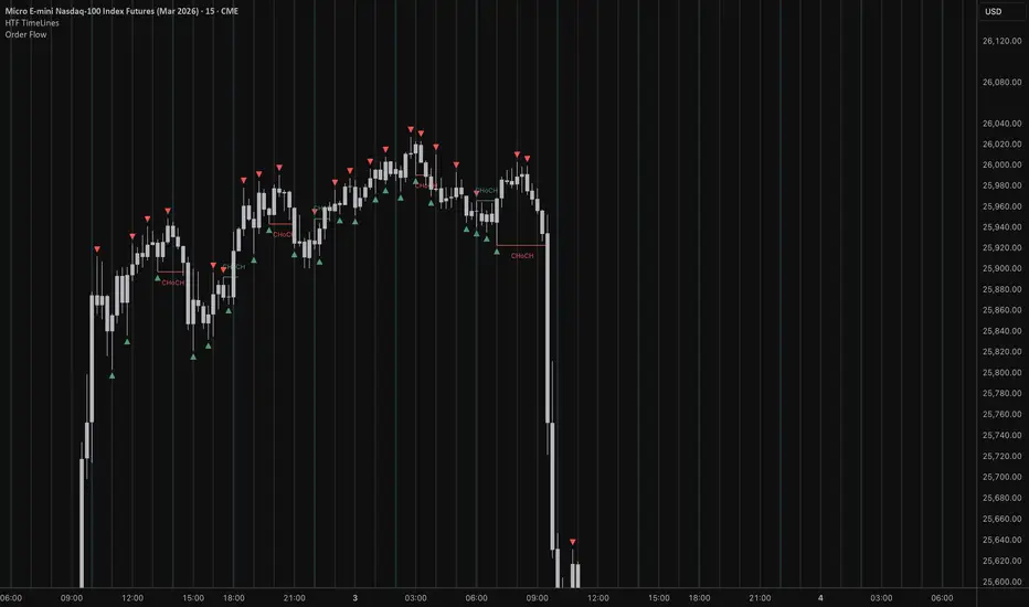 Order Flow, CHoCH detection based on Williams Fractals of 3-5 fractal bars