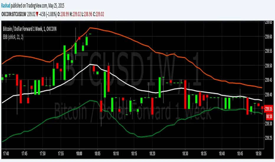 These Bollinger Bands are exponential because the variance is calculated using the exponential moving average, rather than just adding the normal standard deviation to the ema. This may be more useful because the exponential standard deviation should be more sensitive to near term increases or decreases in volatility.