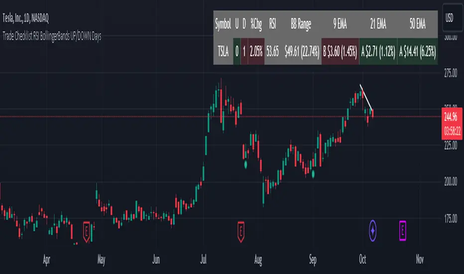 Trade Checklist RSI BollingerBands UP/DOWN Days