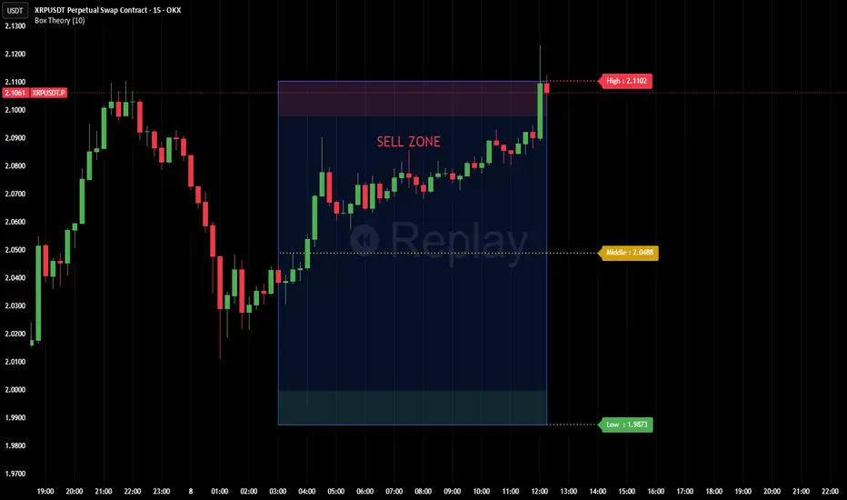 When price enters this red zone inside the box, the indicator can show a Sell Zone label.