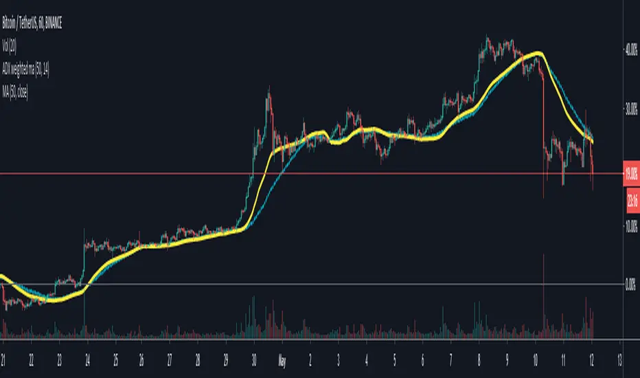 contrary to the well known Volume weighted ma, it is weighted by the ADX value,