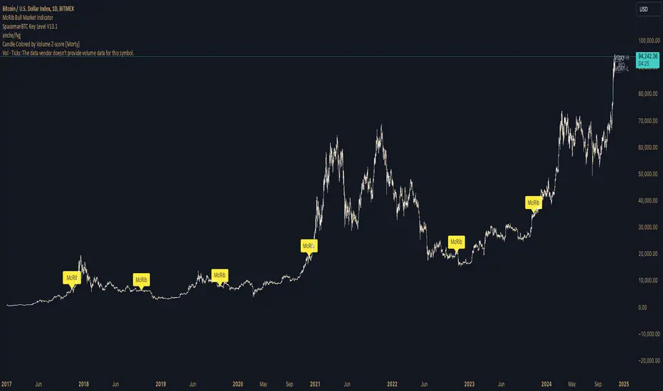 The McRib Bull Market Indicator is a unique technical analysis tool that marks McDonald's McRib sandwich release dates on your trading charts. While seemingly unconventional, this indicator serves as a fascinating historical reference point for market analysis, particularly for studying periods of market expansion.
