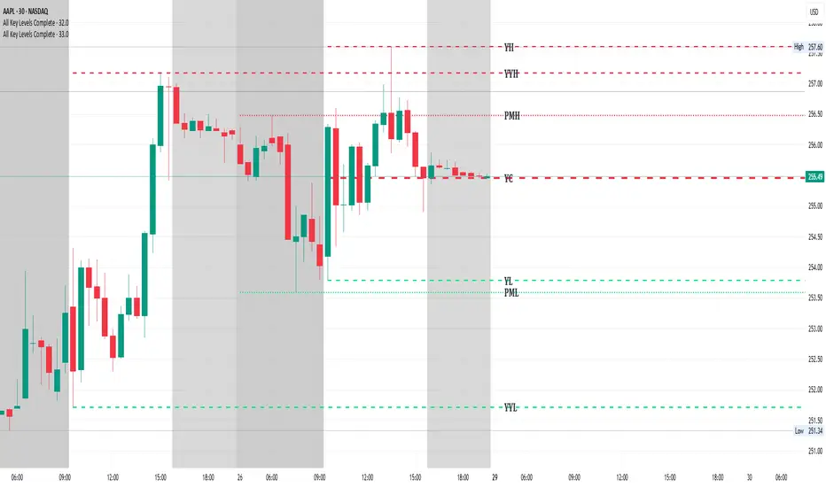 Have lines created for Yesterday Close, Prior Day High, Prior Day -1 Close, Prior Day Low, Prior Day -1 Low, Premarket High and Premarket Low.