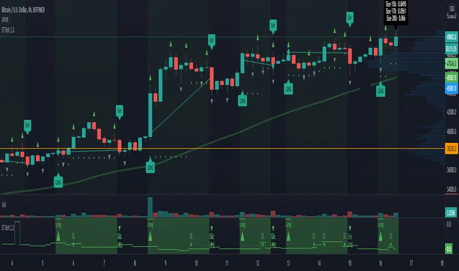 Additionally, this indicator calculates position size and leverage for each trade individually and it is possible to connect the indicator to bots like Profitview to fully automate trading. The indicator provides entries, stops, position size and leverage for each trade.
