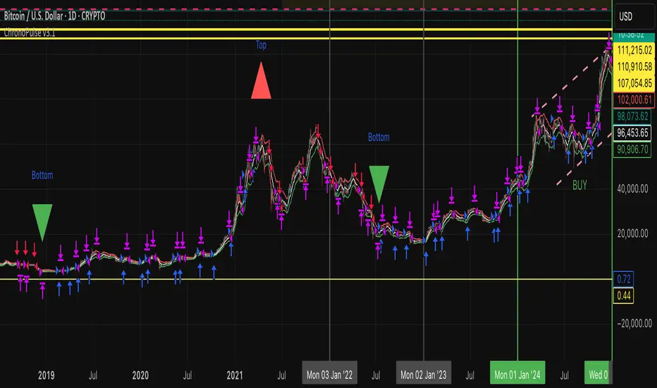 ChronoPulse v3.1 is a directional trend-following strategy designed for Bitcoin trading, combining the Pi Cycle top/bottom signals with the KeltnerPulse indicator and Stochastic RSI confirmation. This strategy aims to capture strong trend reversals and directional movements while minimizing whipsaws.