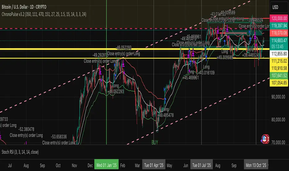 ChronoPulse v3.1 is a directional trend-following strategy designed for Bitcoin trading, combining the Pi Cycle top/bottom signals with the KeltnerPulse indicator and Stochastic RSI confirmation. This strategy aims to capture strong trend reversals and directional movements while minimizing whipsaws.