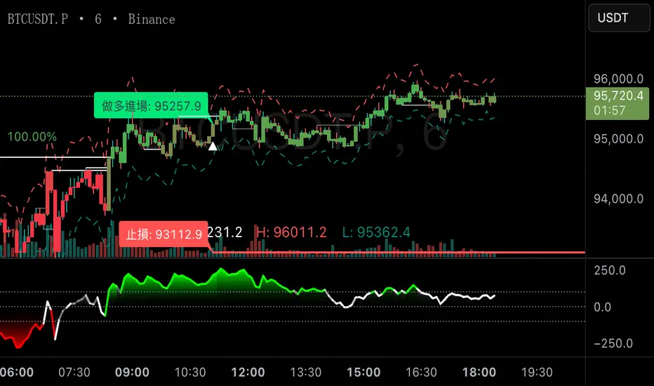 This indicator not only colors candles based on trend strength, but also extends trend strength and volatility-scaled projection candles to show where trend pressure may expand next.