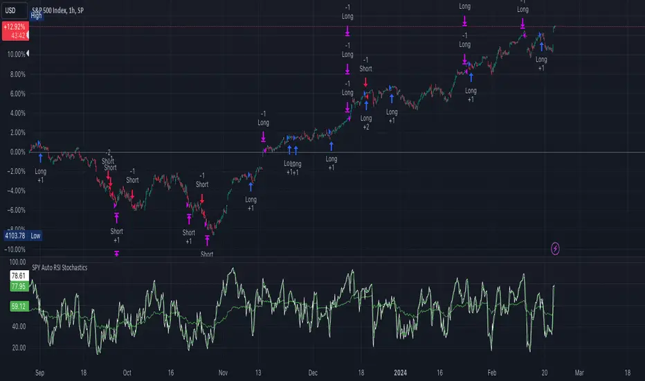 The "SPY Auto RSI Stochastics" strategy is designed to leverage a combination of Relative Strength Index (RSI) and Stochastic indicators to identify potential entry and exit points in trading the SPY $SP:SPX.