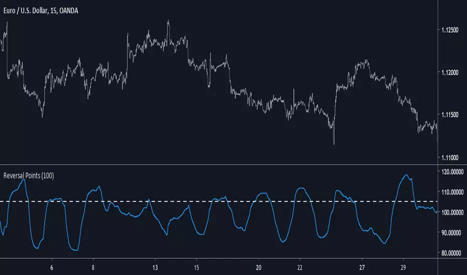 This indicator is inspired from the mass index indicator with the goal of telling the user when a trend is about to stop thus highlighting potential reversals.