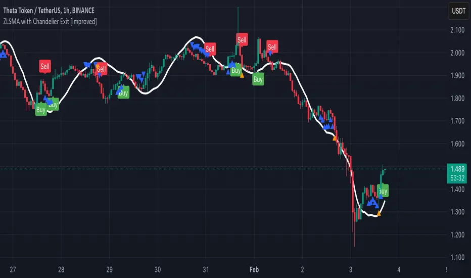 Lagging Nature: Despite being faster than standard moving averages, ZLSMA and Chandelier Exit can still lag during highly volatile market conditions.
