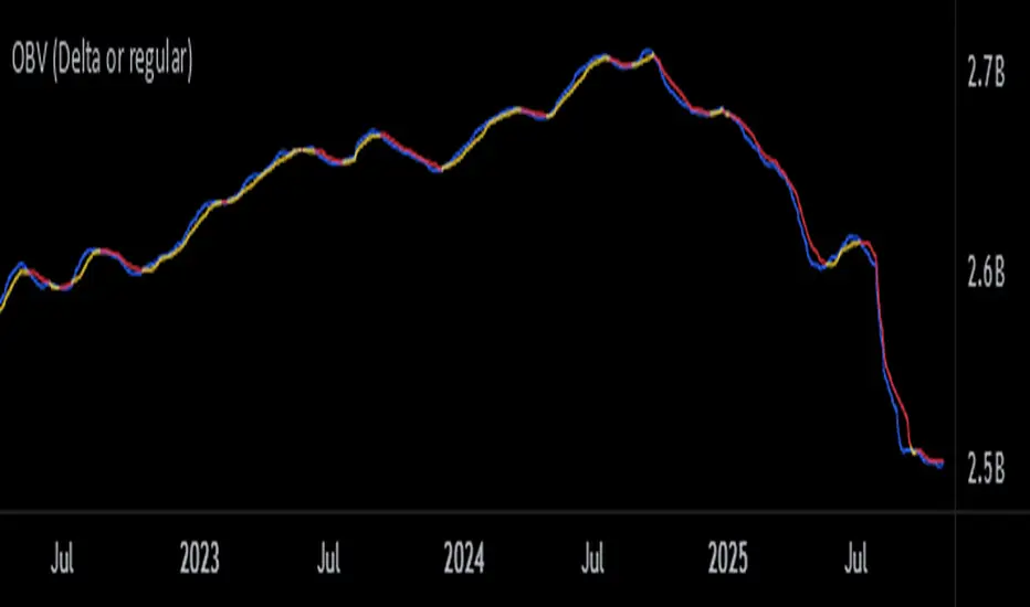 This is a quite simple script to apply some choices to OBV.- You can choose to use regular OBV values or you can choose to use delta OBV values.