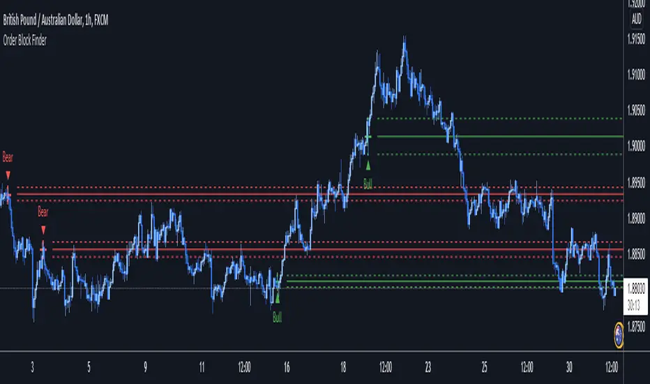 After finding a huge amount of use from TV user's wugamlo script Order Block Finder (Experimental), I decided to make some much needed upgrades! Added support for plotting the last X number of Order Blocks and am currently working on a multi-timeframe version.