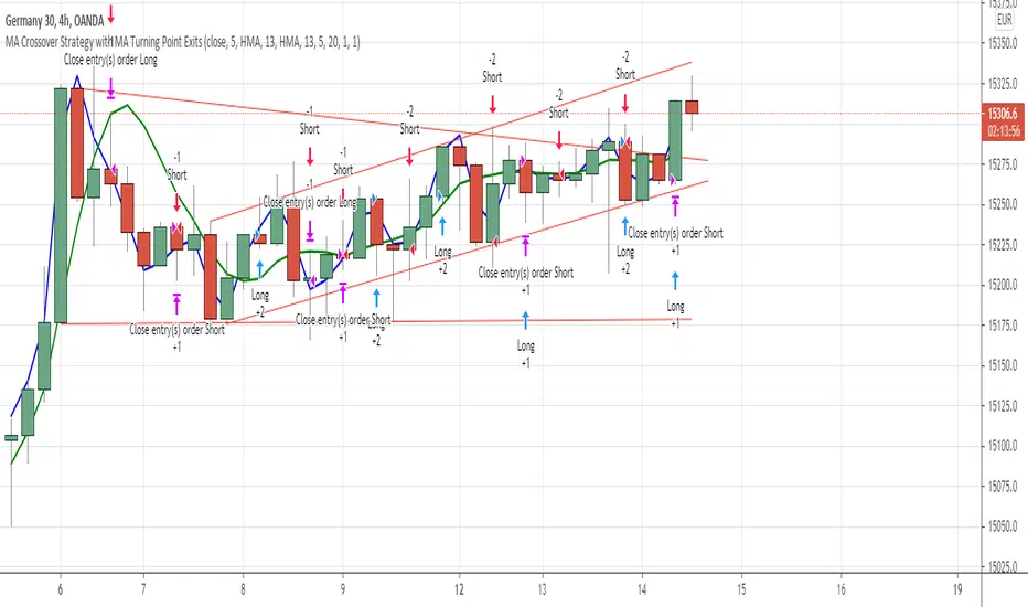MA Crossover Strategy with MA Turning Point Exits + ADX filter