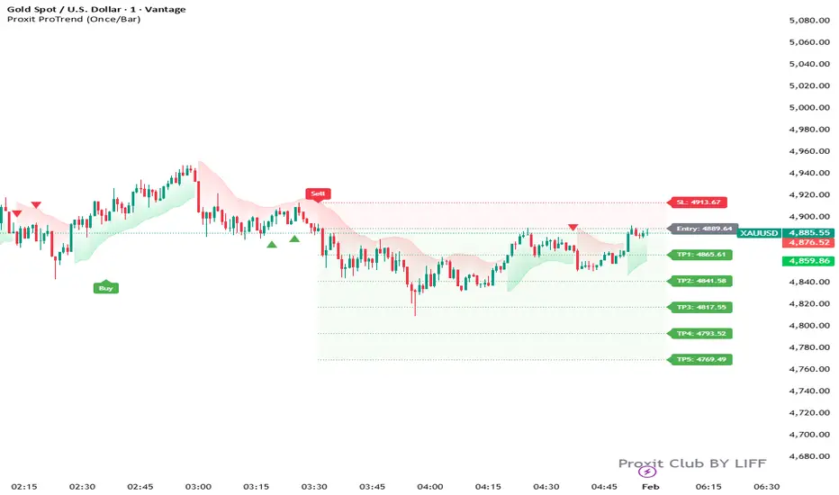 In volatile markets, traders often fall into the trap of "taking profits too early" or trying to "catch falling knives" (counter-trending). Proxit ProTrend utilizes a proprietary algorithm that blends Price Action with Adaptive Volatility filters. This effectively smooths out market noise during sideways consolidation and identifies the birth of a true trend.