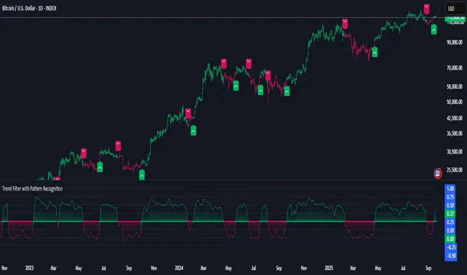 A trend-following indicator that combines high-pass filtering with pattern recognition to generate buy and sell signals.🔶 CALCULATION