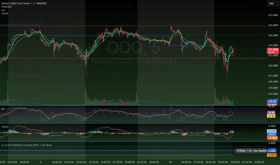 ABOUT THIS SCRIPT – 0–14 DTE Volatility ScreenerThis indicator is designed to identify stocks and ETFs that are well-suited for short-dated options trading (0–14 days to expiration). Short-term options require the underlying ticker to exhibit sufficient realized volatility, consistent range, and clean trend structure to overcome rapid theta decay. This tool highlights instruments with the volatility characteristics needed to support high-quality intraday and short-term swing setups.