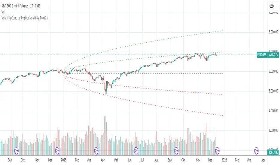 VolatilityCone by ImpliedVolatility Pro is a forward-looking volatility projection tool that visualizes expected price ranges based on implied volatility.