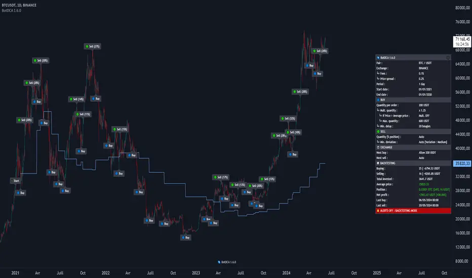 BotDCA uses advanced indicators and complex calculations to identify buying and selling opportunities.