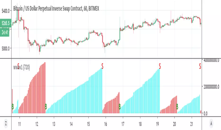 change the tf to minute length of your desire to get better results, also can act as good filter for your purpose if you want to have a volume filter to your desire indicator . by its own it has its good and bad so work need to be done probably with other indicators to make it much better .