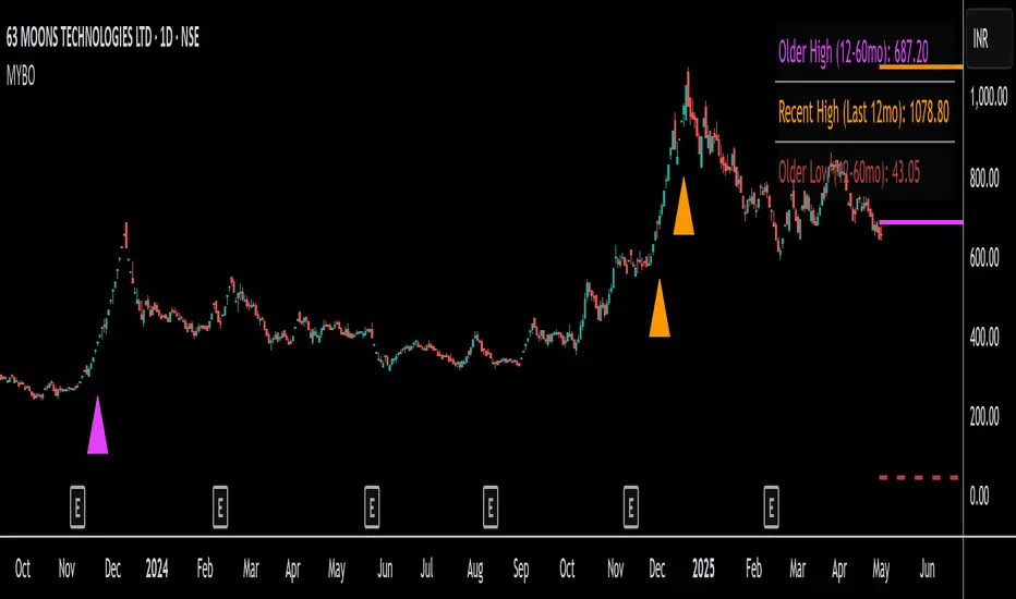 What it Calculates: It finds the exact price for the highest high in the "older" period you set, the highest high in the "recent" period, and the lowest low in the "older" period.