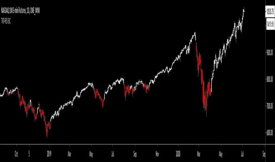 Default settings are set to color all bars red when below 50, and white when above 50, but try for your self setting different colors above 70, and below 30 to better see overbought and oversold conditions. I got a lot of requests for this script and I hope it helps you in your trading journey :-)