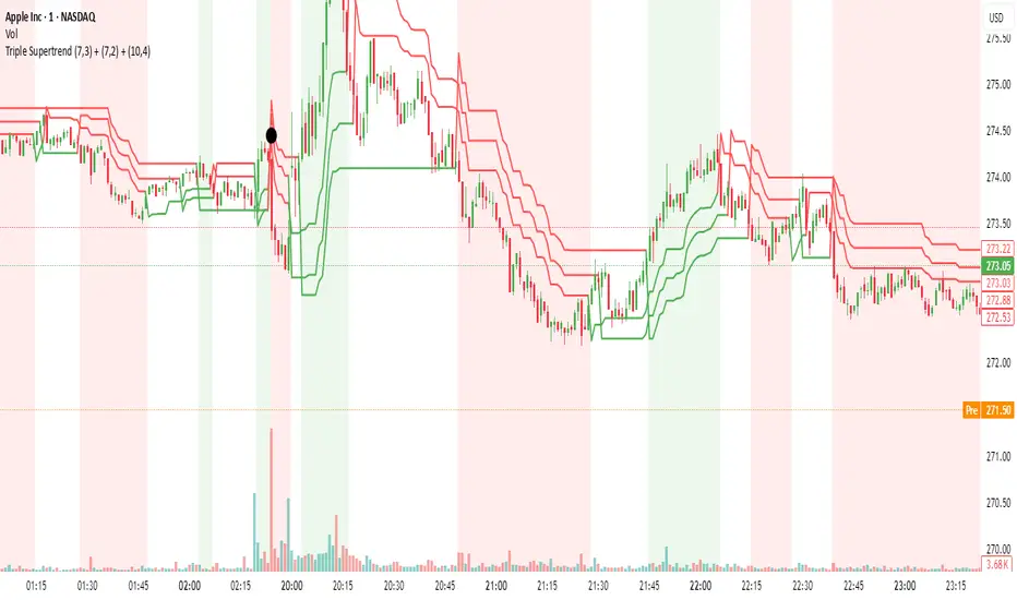 it gives 3 super trends giving the trend and is very good indicator.can be used to be in trend and trail your profit and stoip losses
