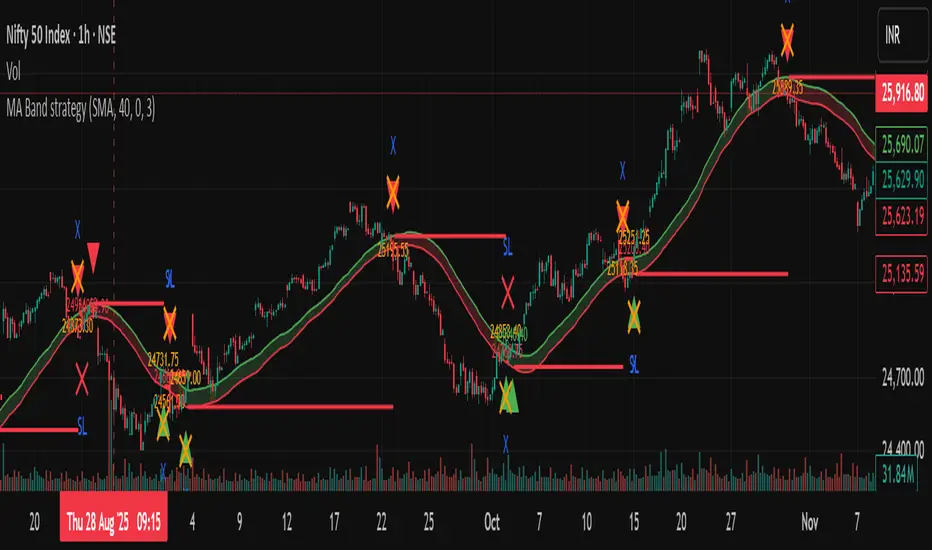 The Moving Average Band Strategy is a fully customizable breakout and trend-continuation system designed for traders who need both simplicity and control.