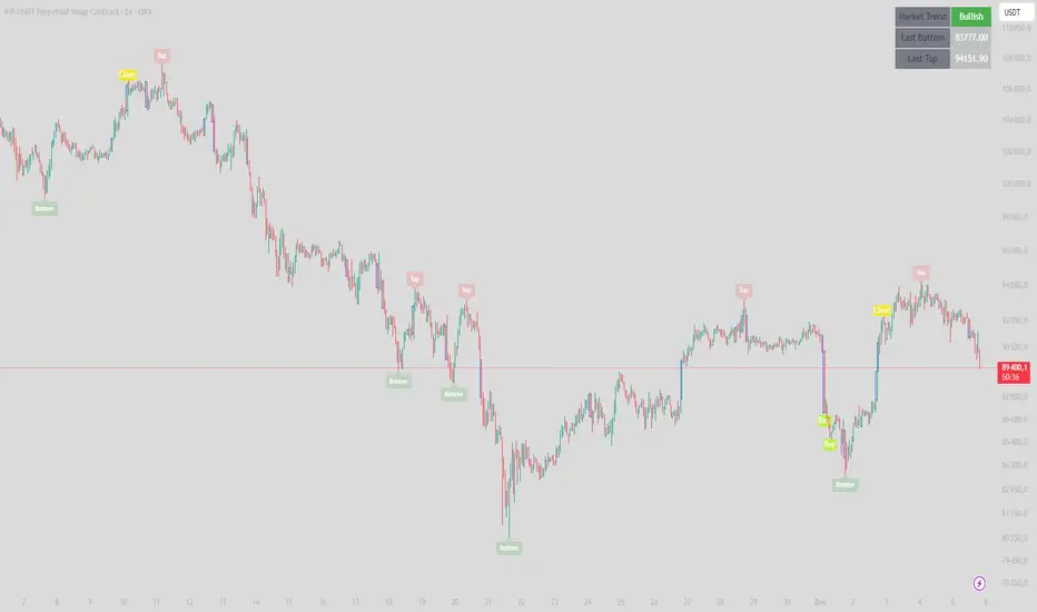 * Посмотрите на **Market Trend / Last Bottom / Last Top** в панели.