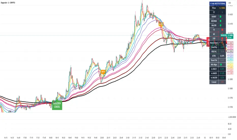 This is a comprehensive Trading View Pine Script indicator that implements a sophisticated multi-timeframe moving average system with institutional-grade filters. Let me break down its key components and functionality: