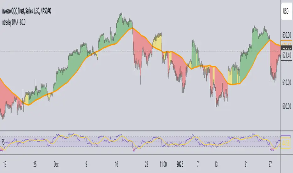 DMA on Intraday timeframes only: This indicator is designed to work exclusively on intraday charts with timeframes between 1 minute and 1 day. It will not function on tick, second-based, or daily-and-above charts.