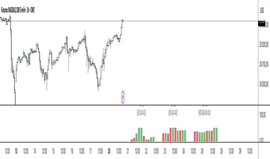 This indicator provides multi-timeframe volume visualization designed to complement price action analysis. It displays volume data from up to 6 higher timeframes simultaneously in a separate panel, allowing traders to identify volume spikes, divergences, and institutional activity without switching between timeframes.